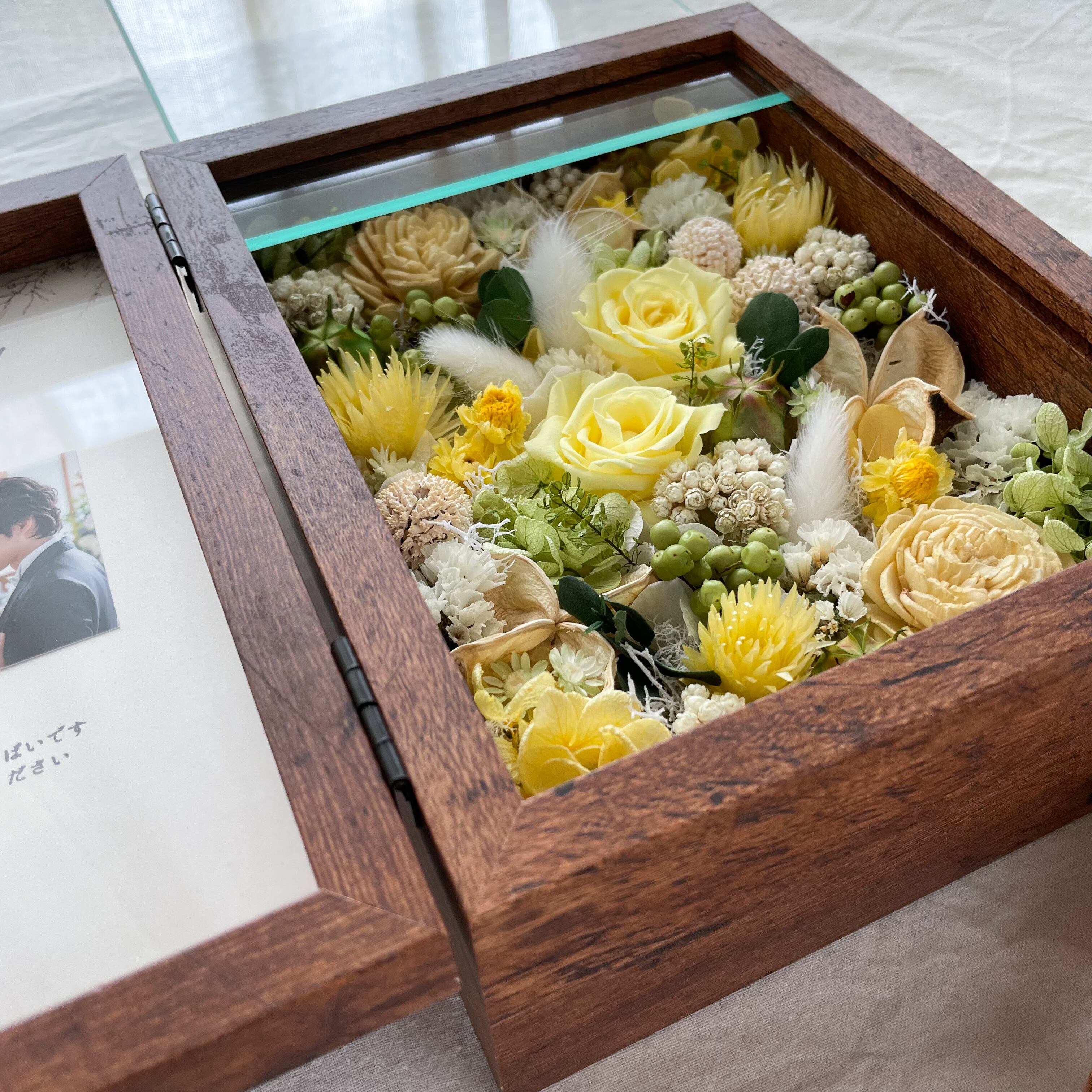 【両親贈呈品・写真入れOK】思い出に残るお花のフォトボックス(イエロー)