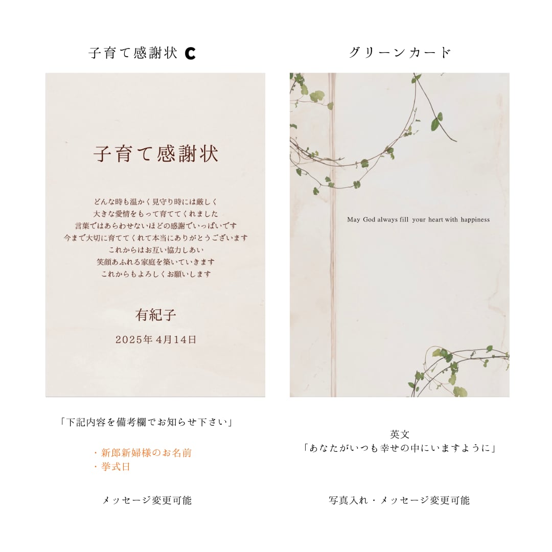 ②メッセージカード(はがきサイズ)にお名前入れが可能です。