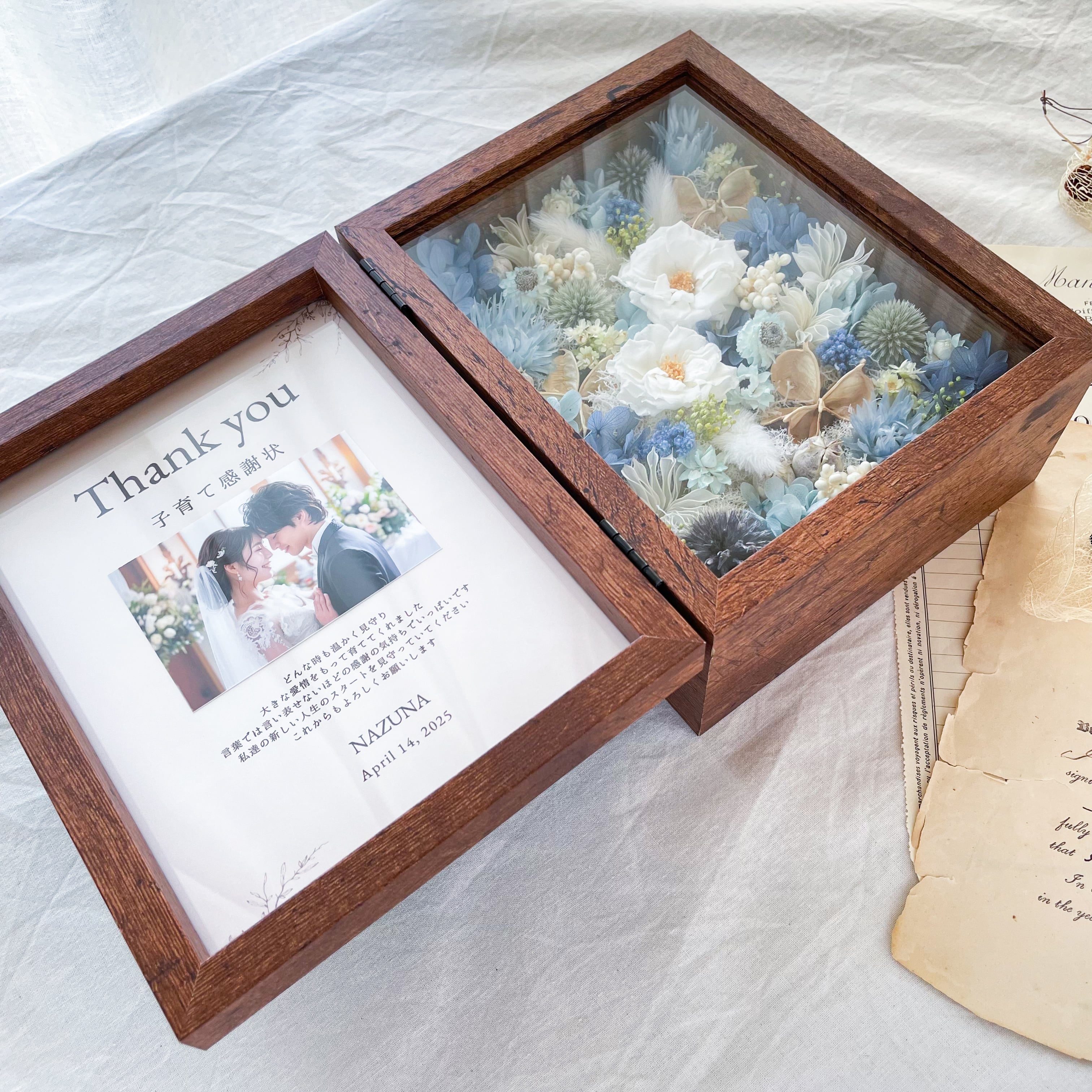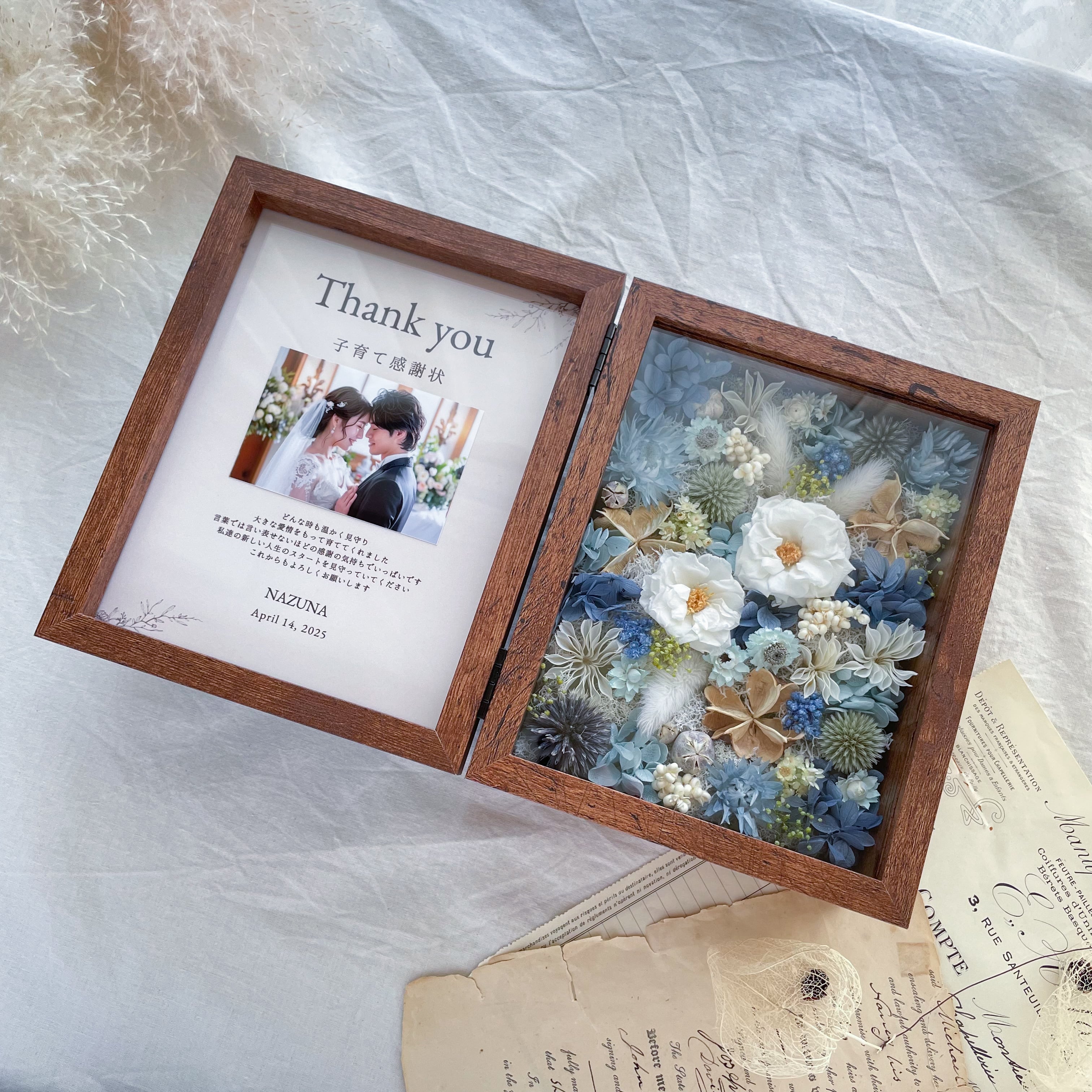 【両親贈呈品・写真入れOK】思い出に残るお花のフォトボックス(ブルー)