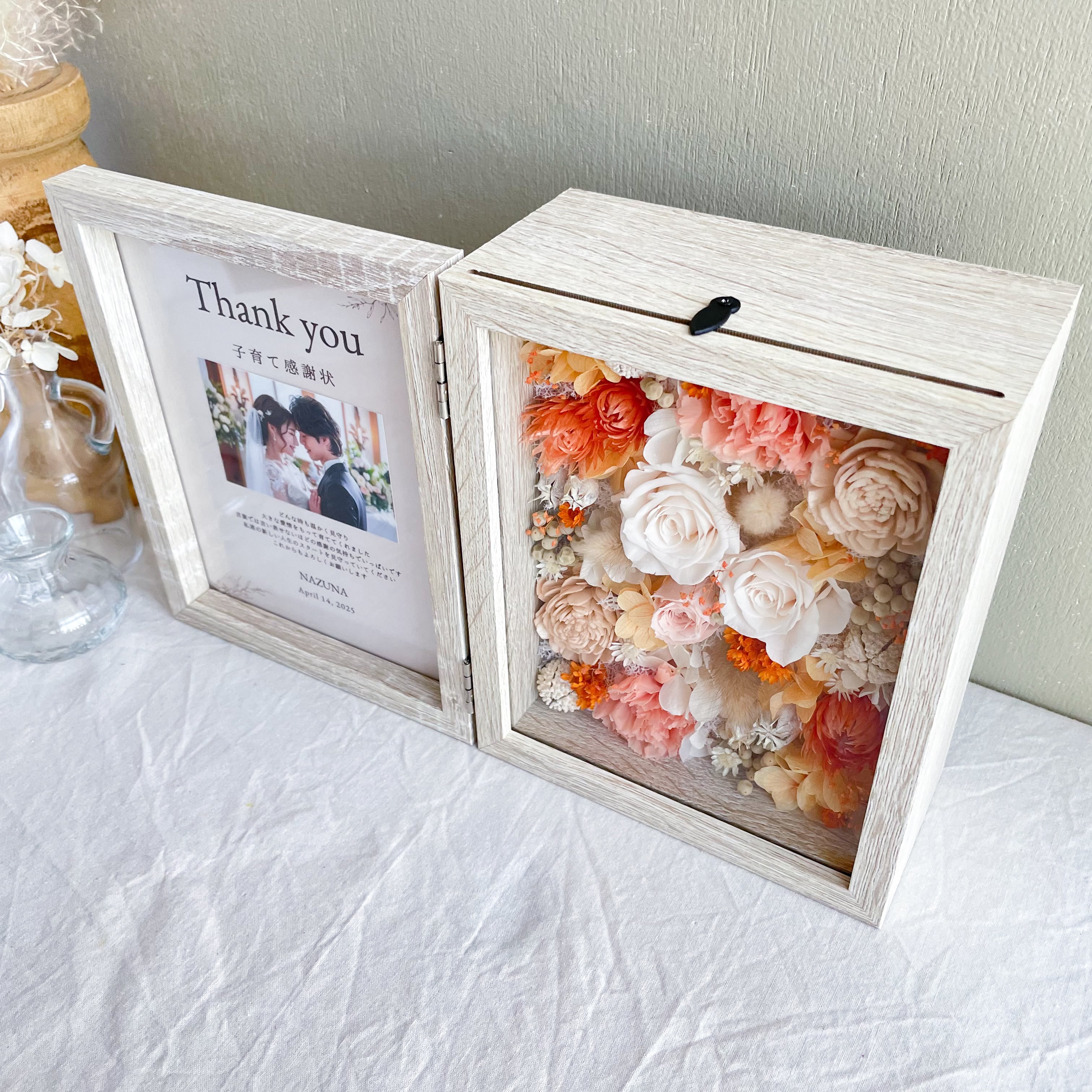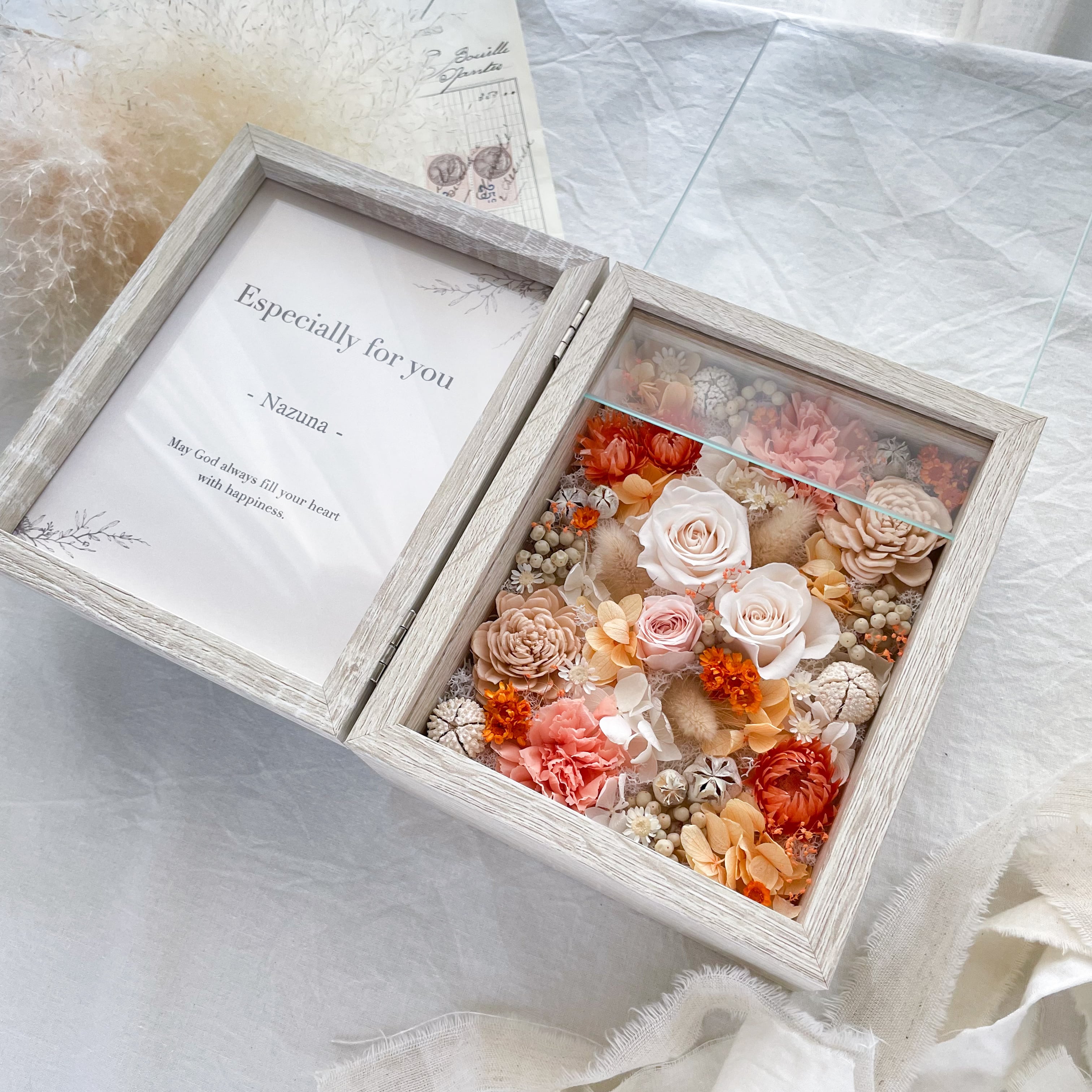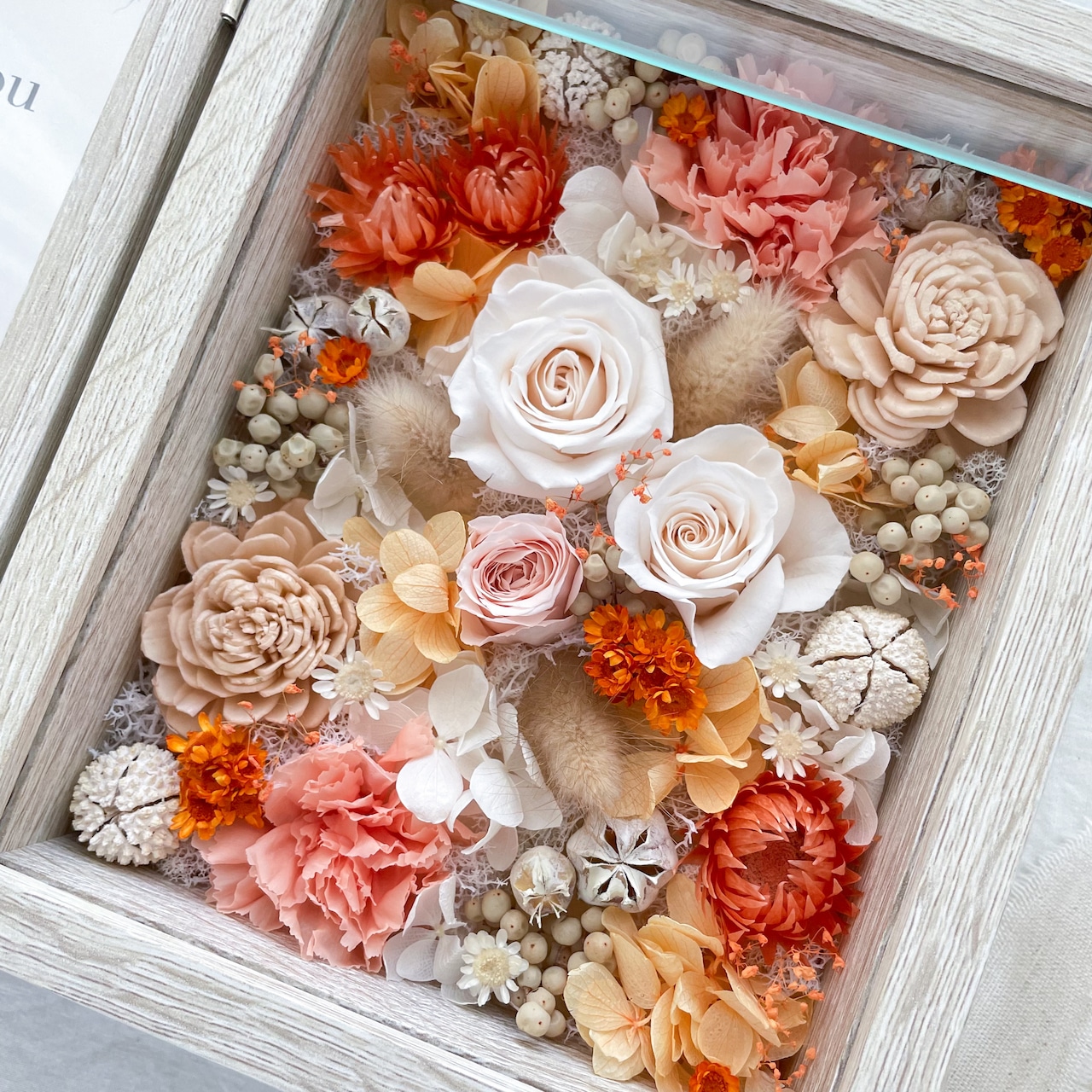【両親贈呈品・写真入れOK】思い出に残るお花のフォトボックス(オレンジ)