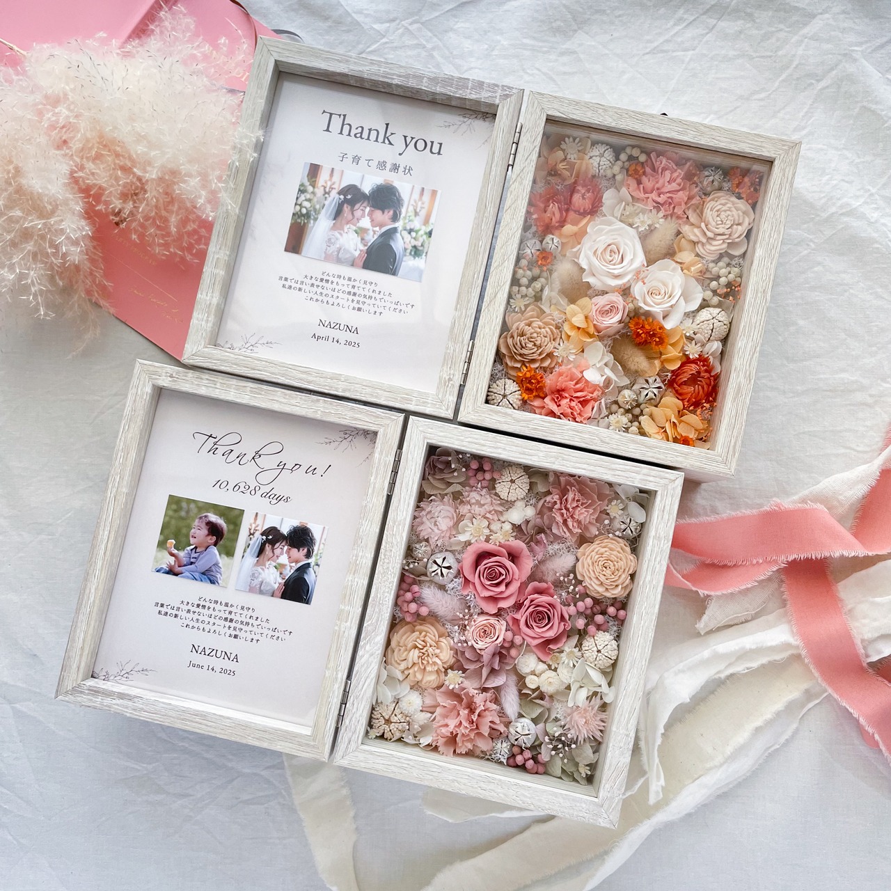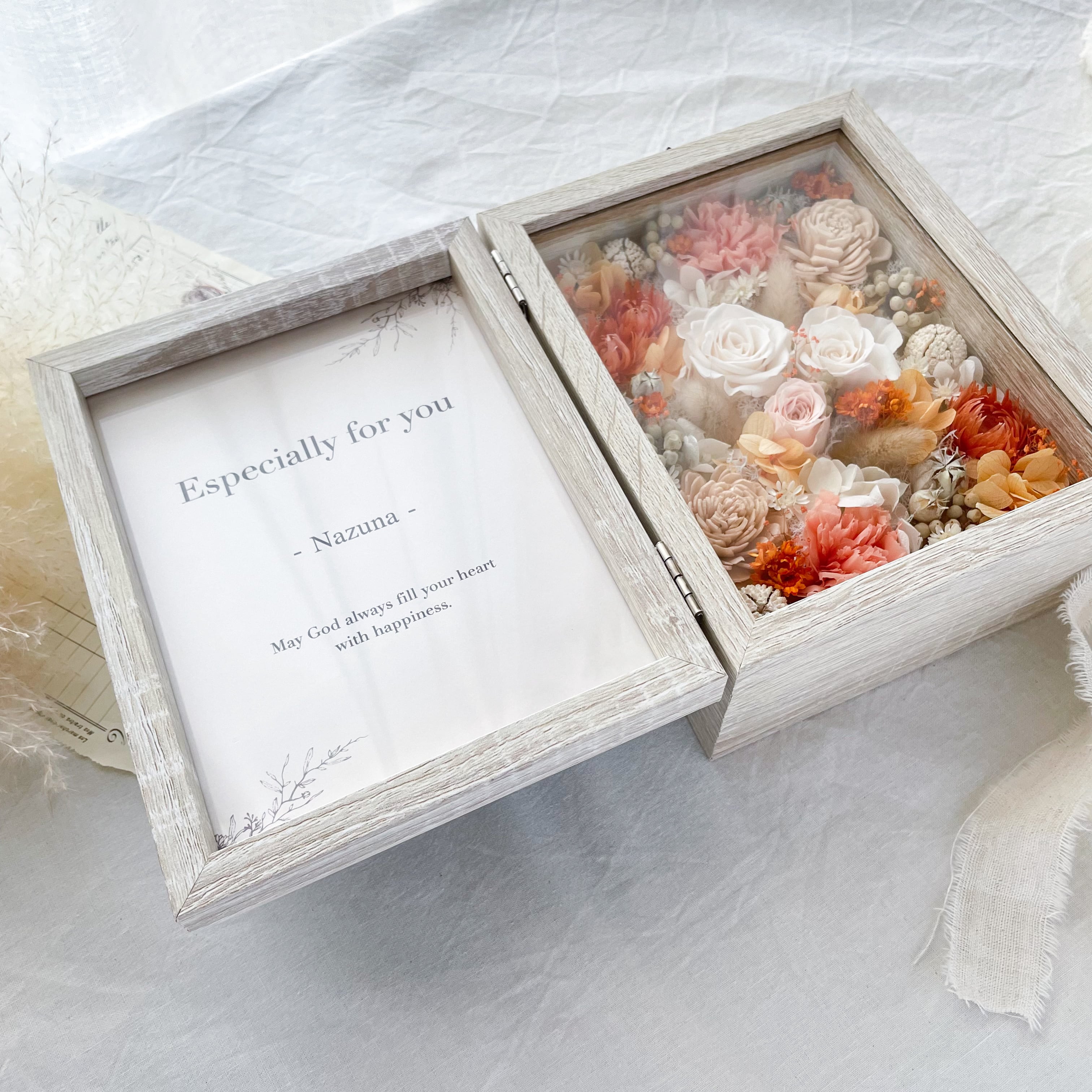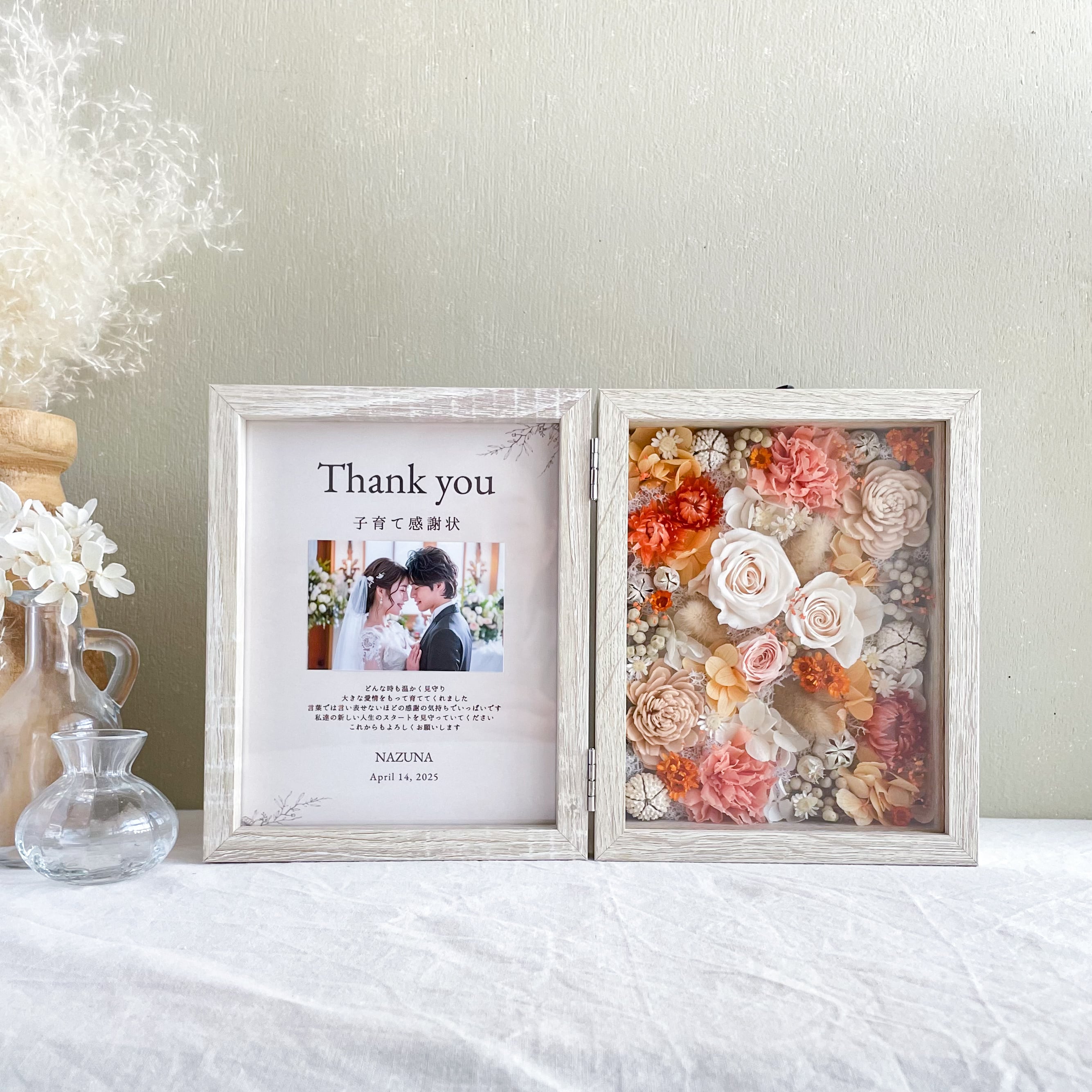 【両親贈呈品・写真入れOK】思い出に残るお花のフォトボックス(オレンジ)