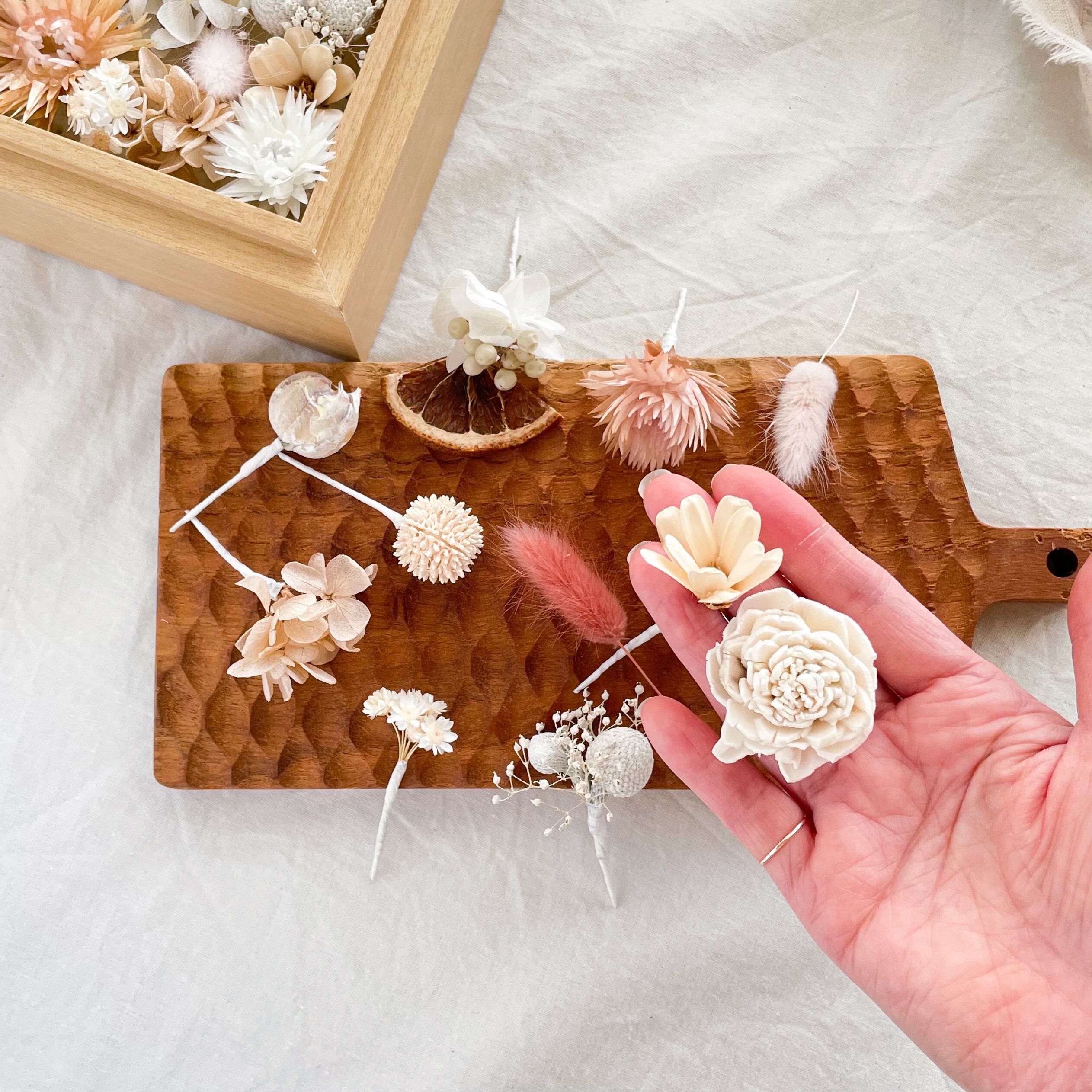 お花はドライフラワー・プリザーブドフラワーを使用していますので、なるべく茎を持ってさしてください。