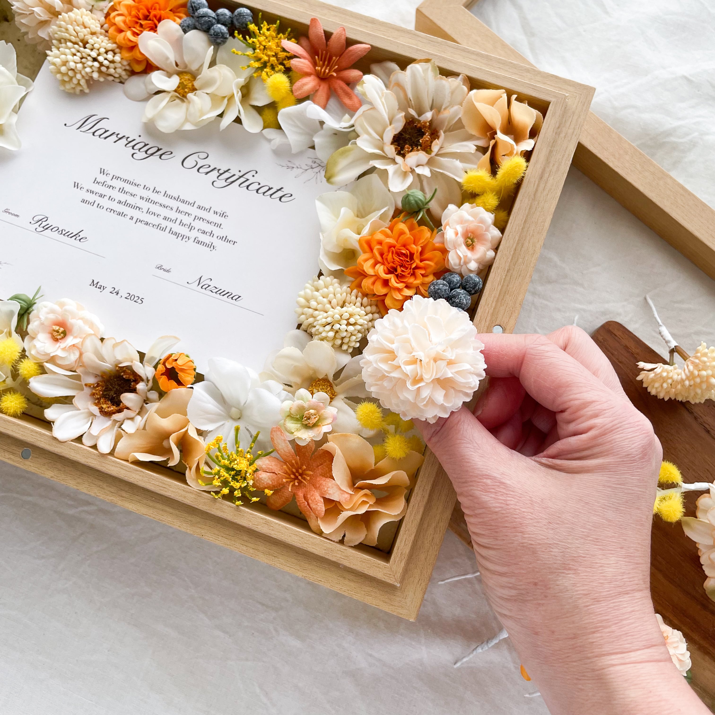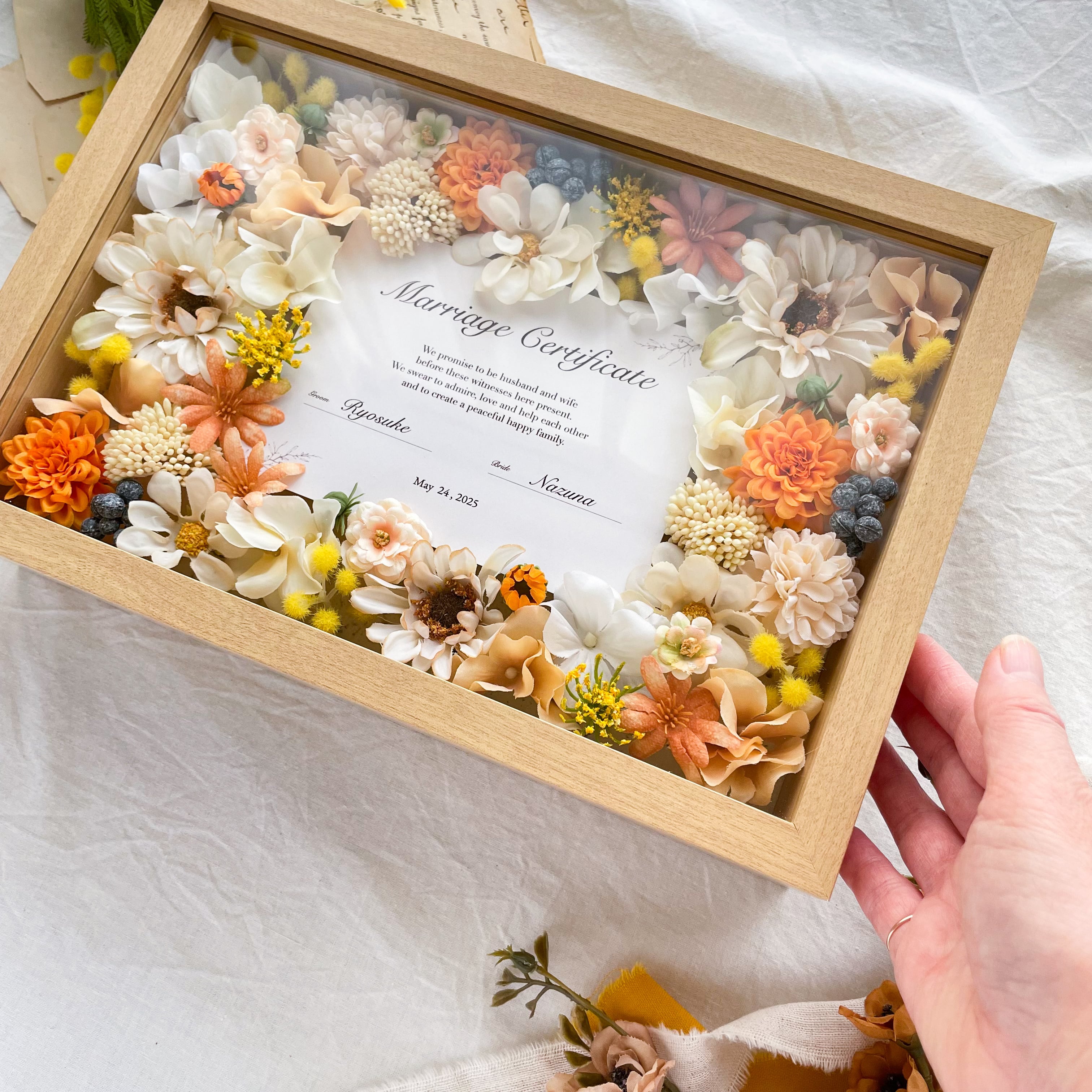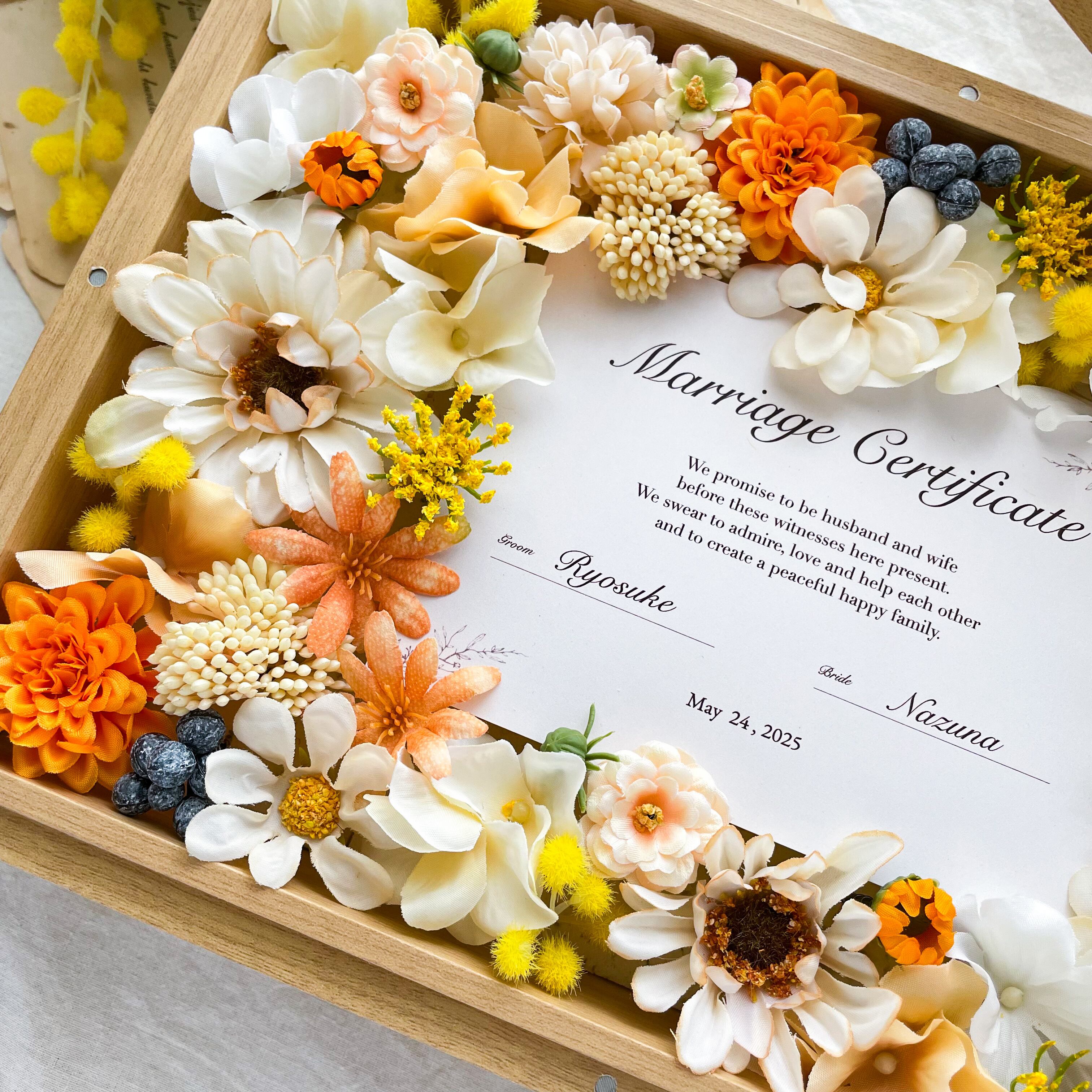 ゲストと作る*お花の結婚証明書 贈答品(ミモザ)