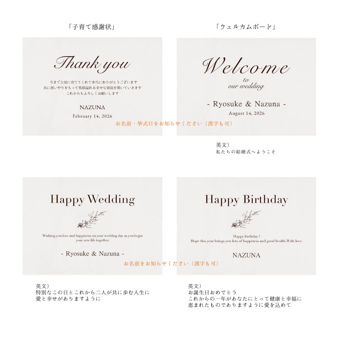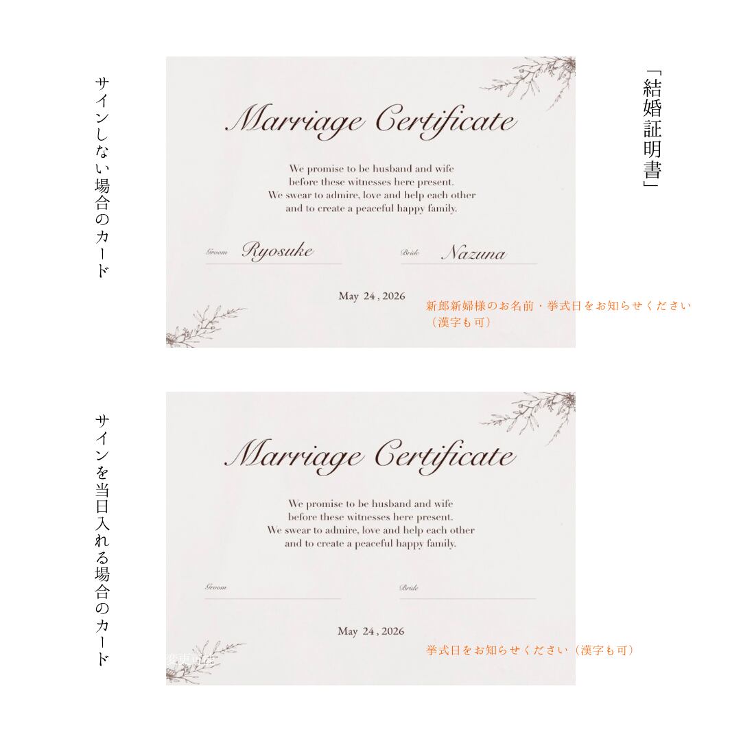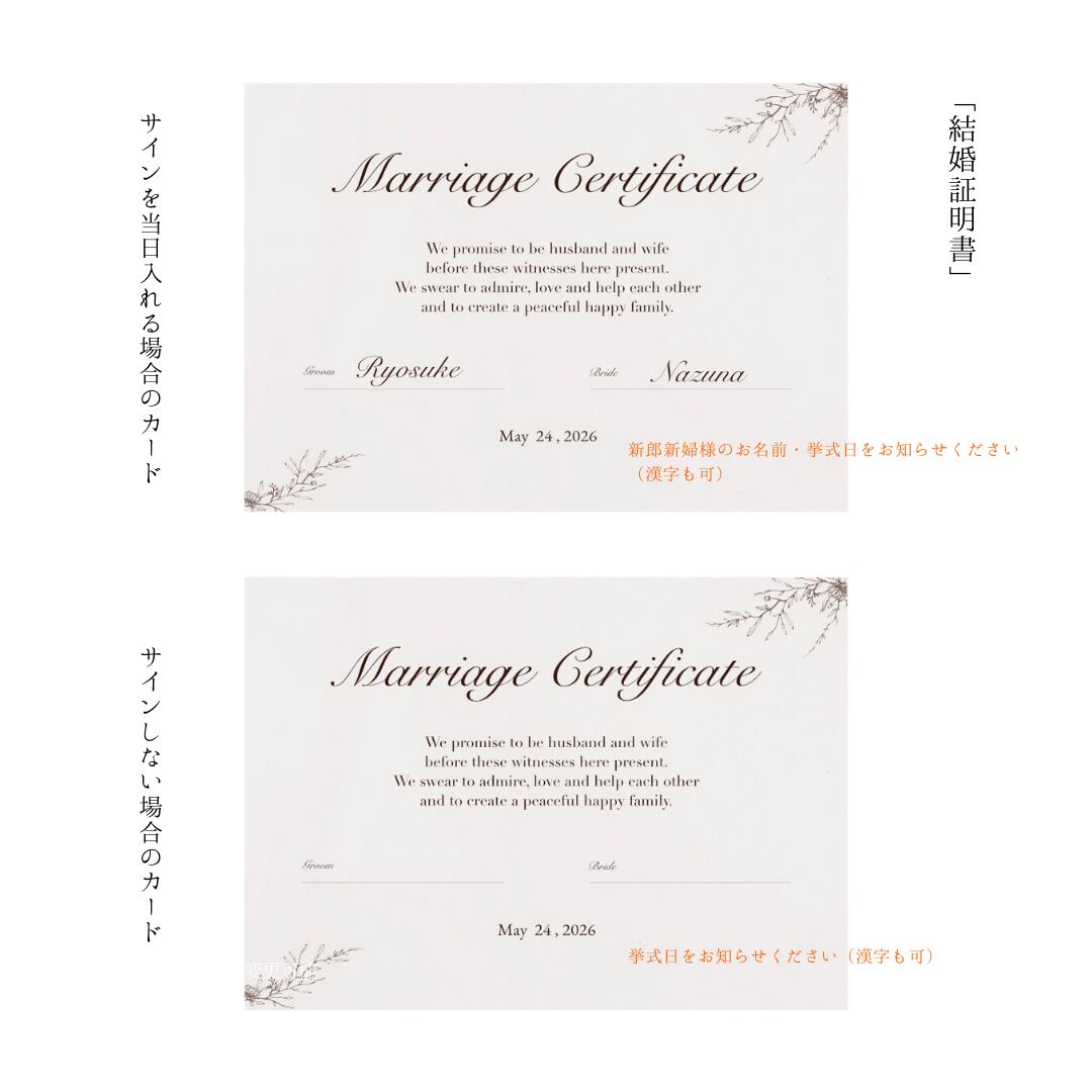 ※挙式日、お名前(サイン形式ではない場合)を備考欄にてお知らせください。