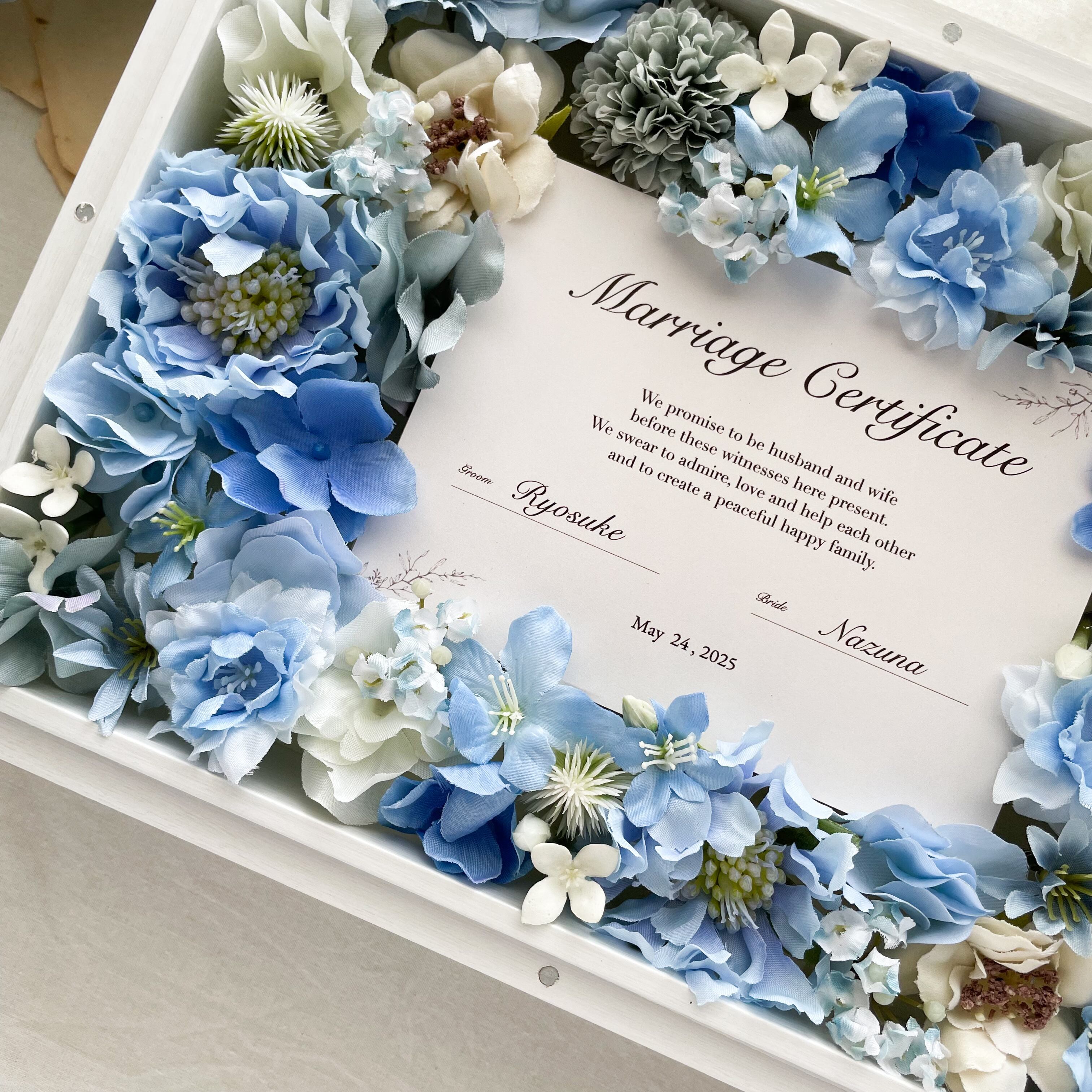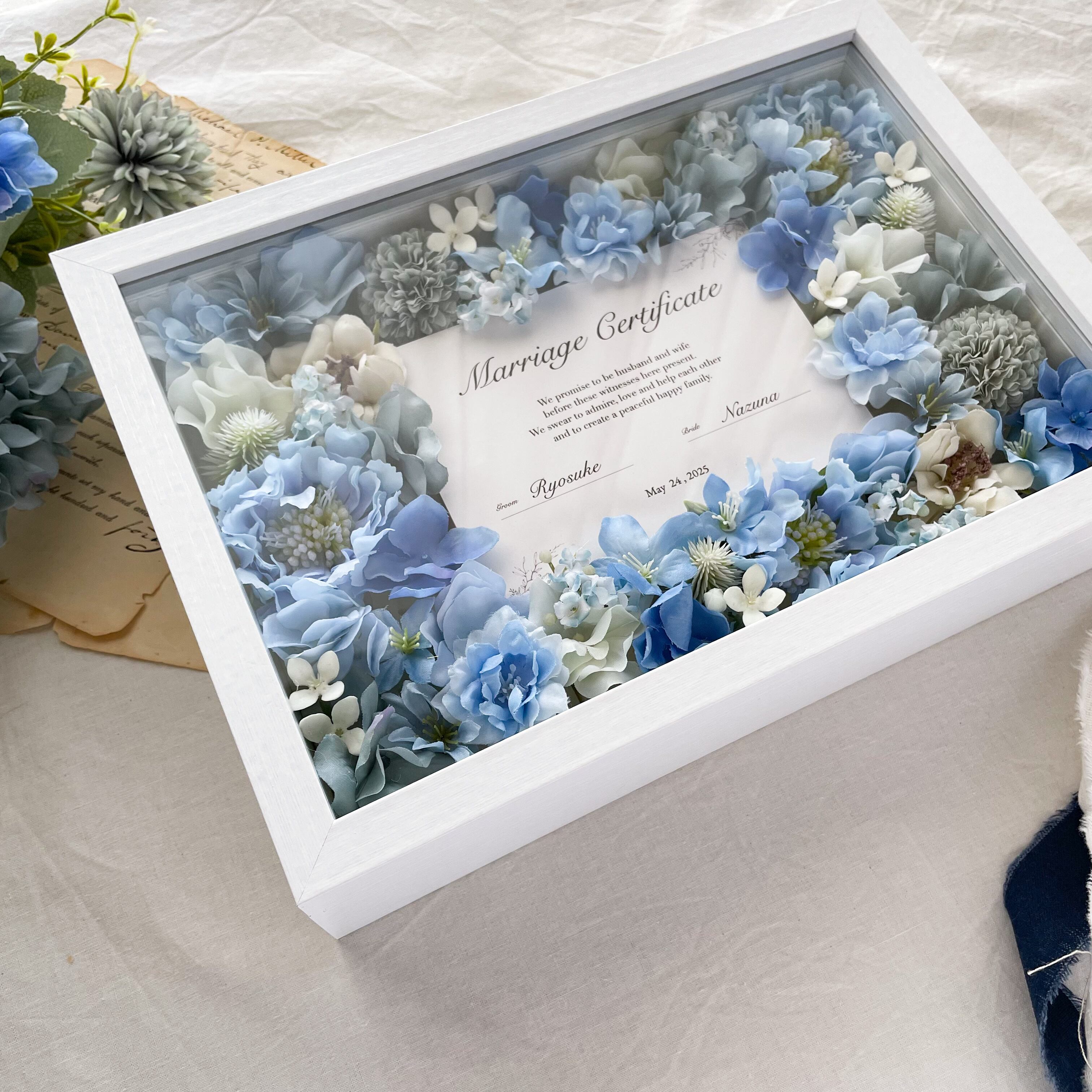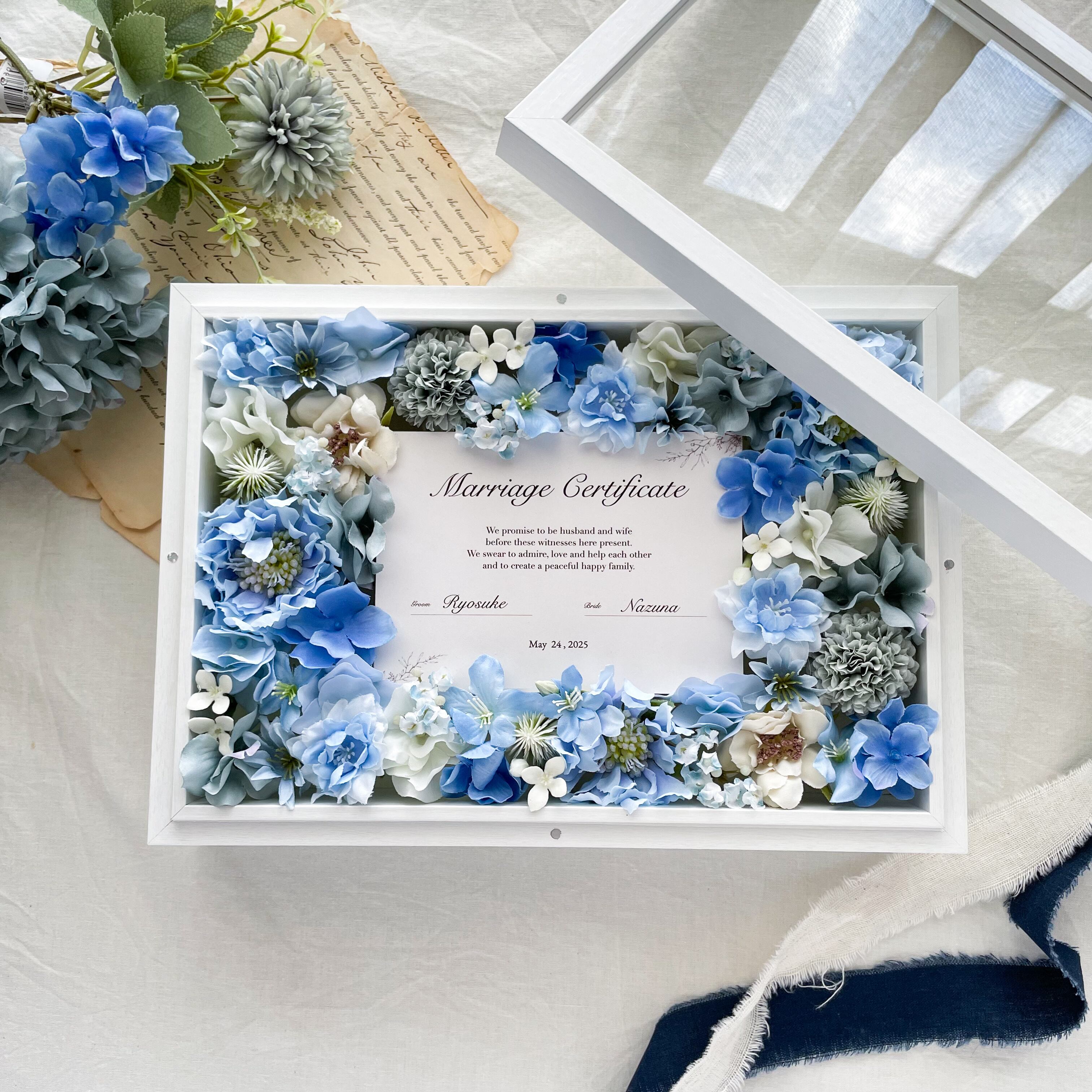 ゲストと作る*お花の結婚証明書 贈答品(ブルー)