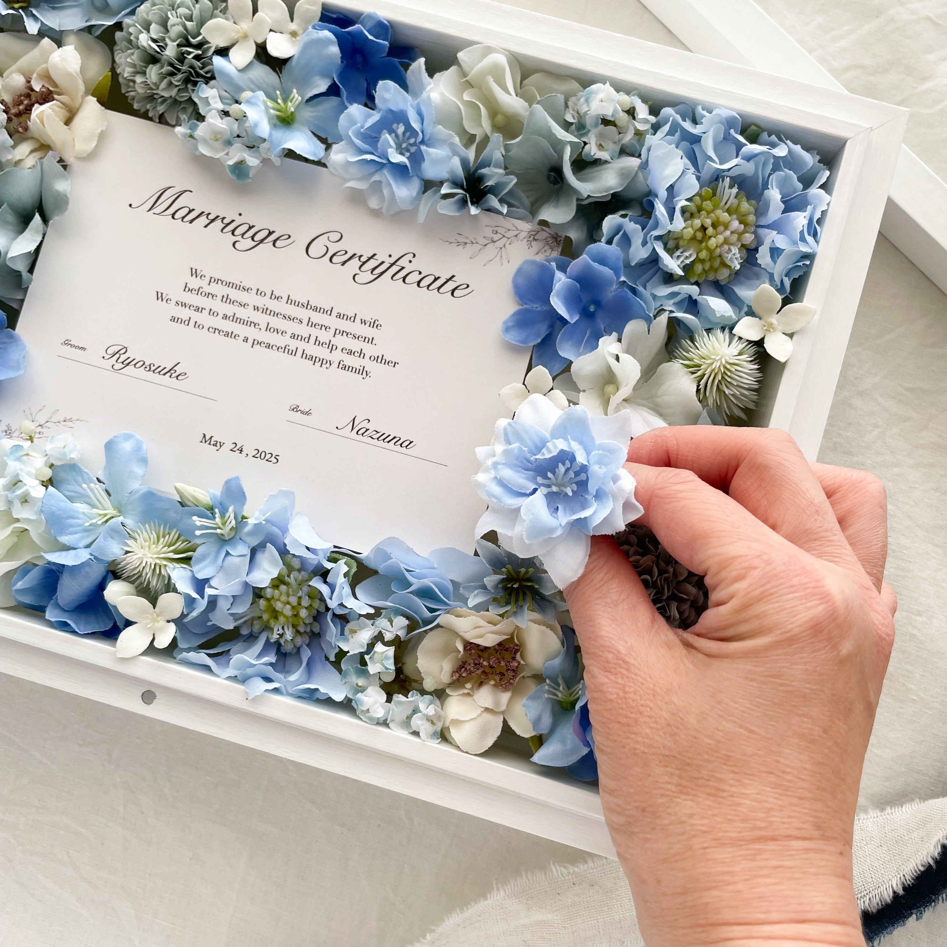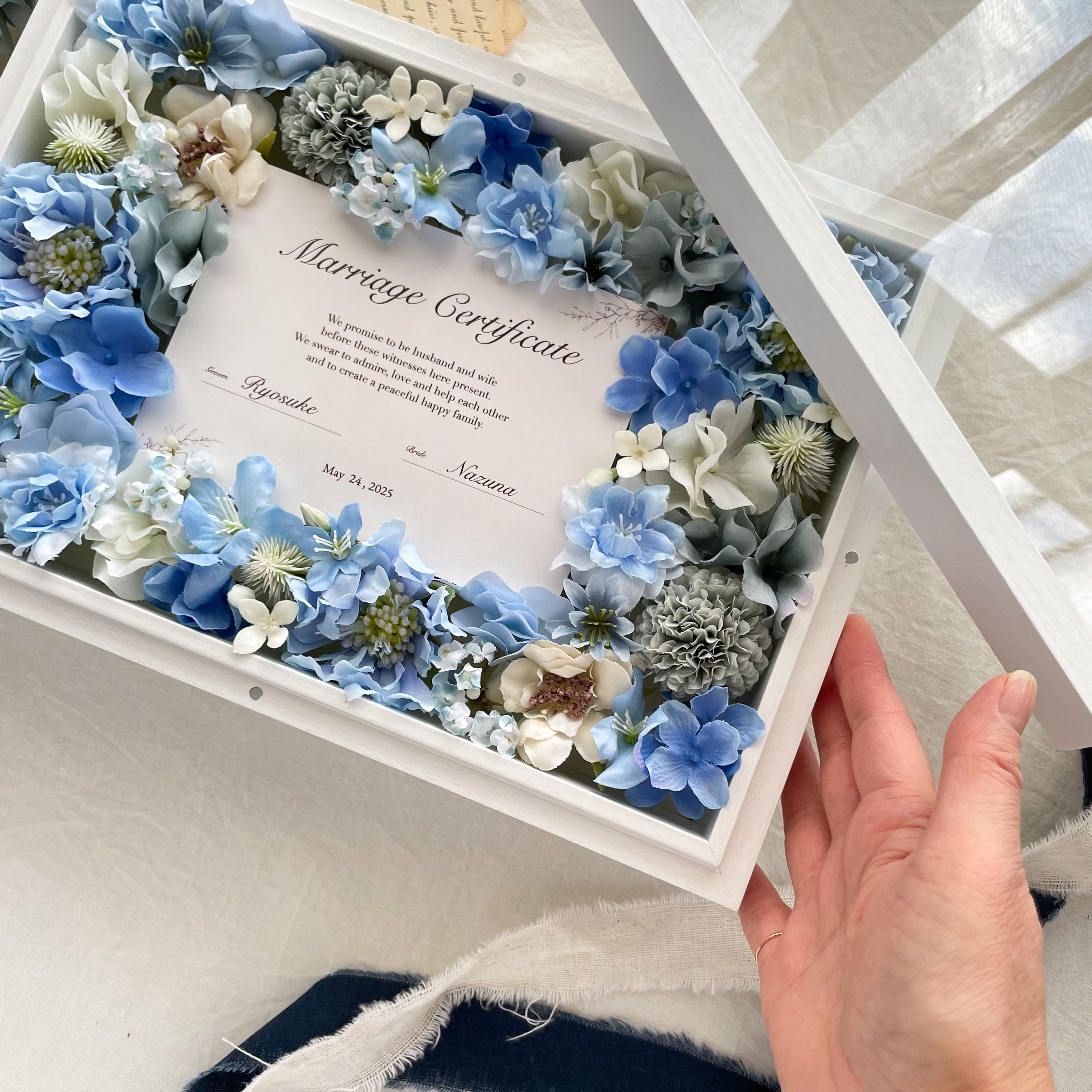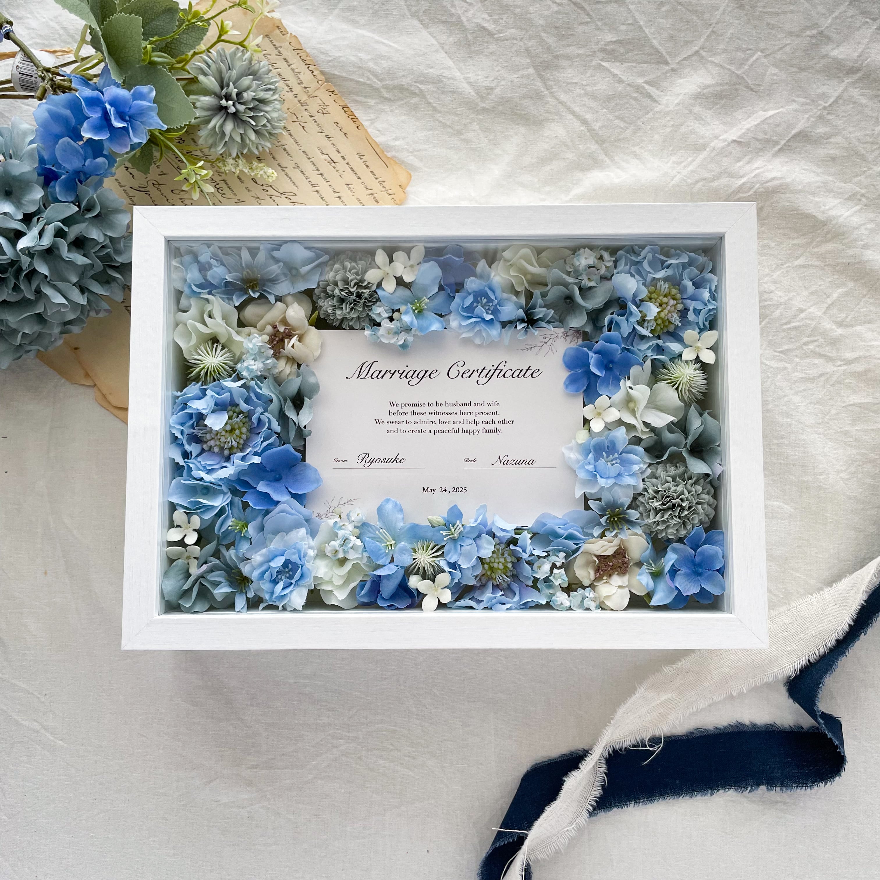 ゲストと作る*お花の結婚証明書 贈答品(ブルー)