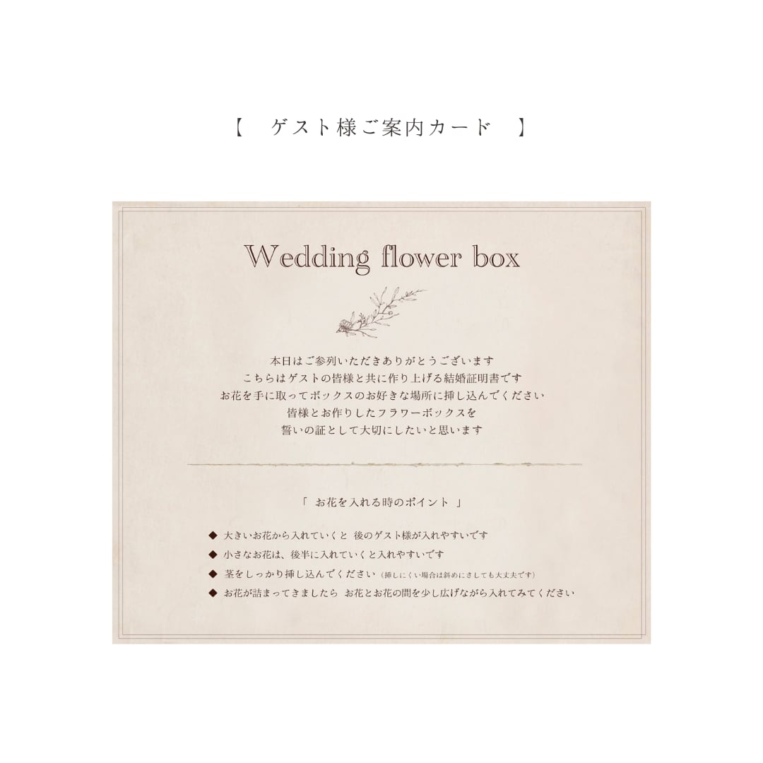 ❹ゲスト様へのご案内カードをお付けしております。(サイズ:縦14.5x横17.7㎝)