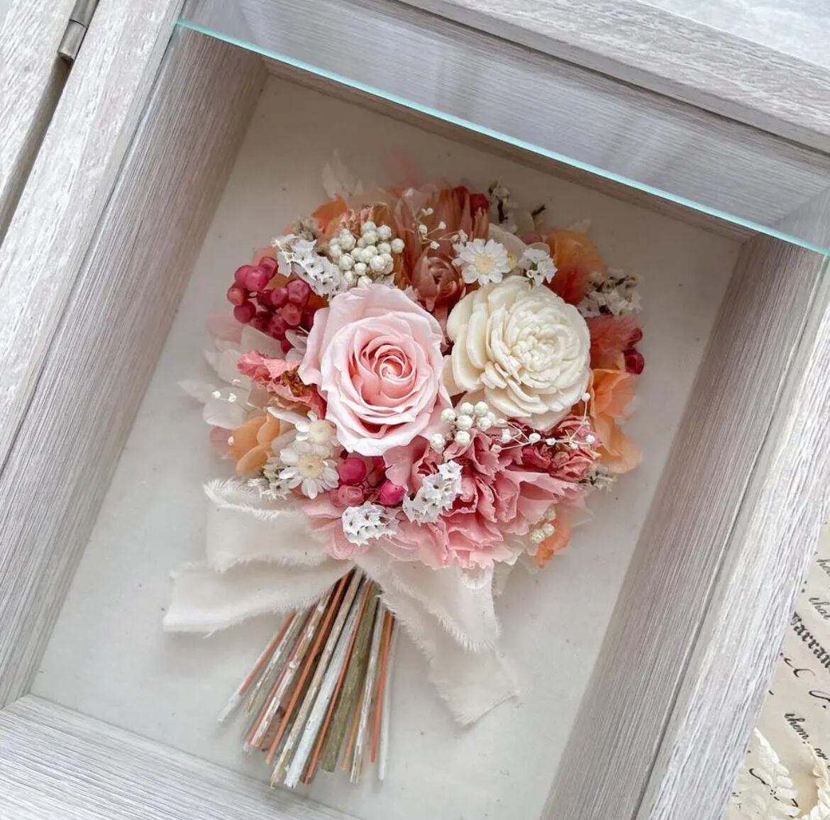BASE様order★【両親贈呈品・BOXが選べる】ミニブーケのフォトボックス(ブルー・ピンクバラ入り)