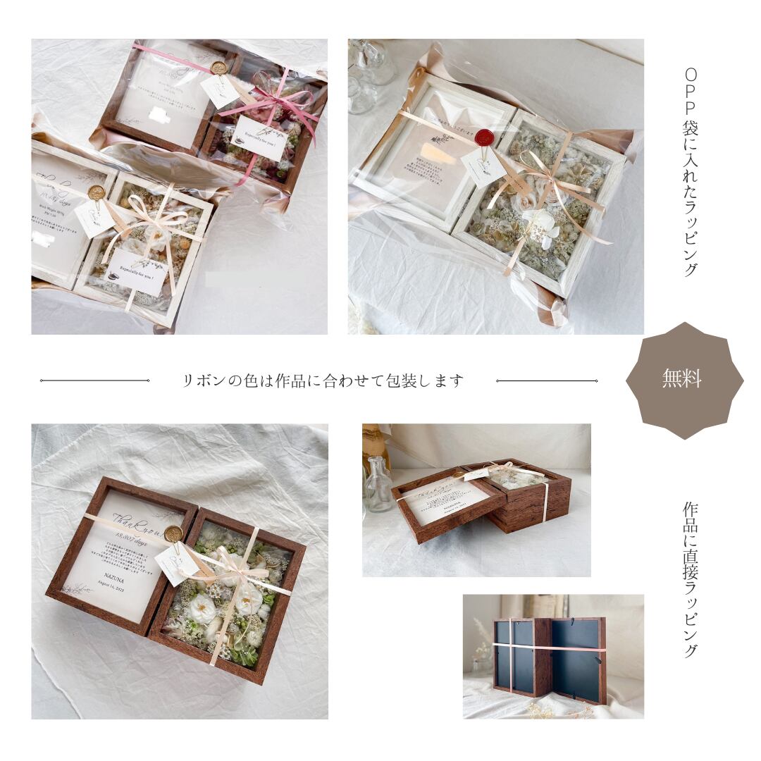 ①作品に直接リボンでのラッピング(セロファンでのラッピングはありません)を致します。