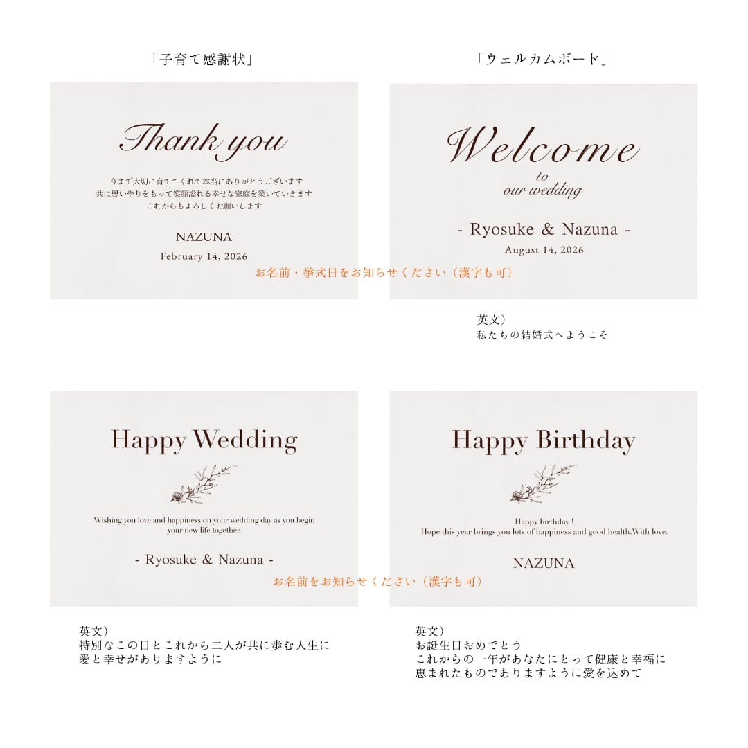 ※挙式日、お名前(サイン形式ではない場合)を備考欄にてお知らせください。