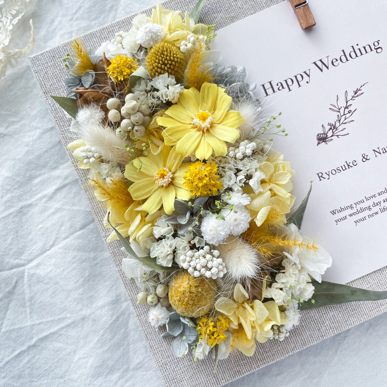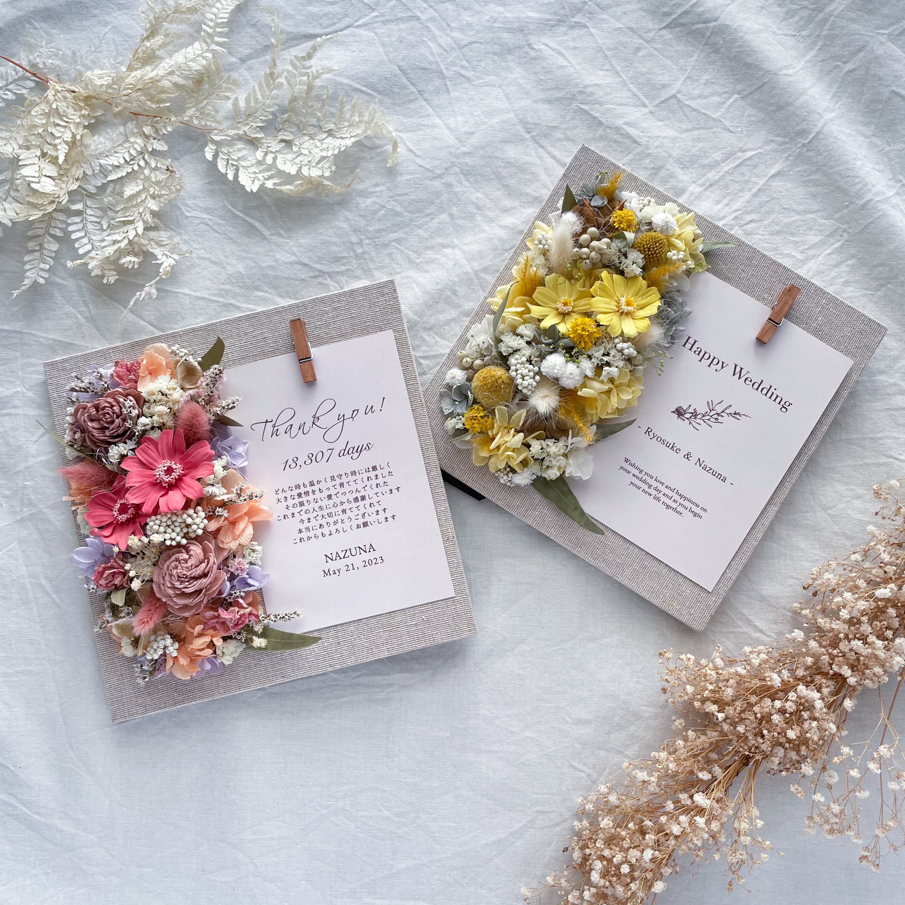 お花をアレンジしたキャンバス地フォトフレームです。お名前入りメッセージカードが付いているので、誕生日や記念日のプレゼントに最適です。さらに、カードは差し替え可能なので、季節や気分に合わせてアレンジも楽しむことができます。一つ一つ手作りで、丁寧にお届けしています。お祝いごとや、ペットの写真フレームにも最適。お部屋に飾ることで、癒しの空間を演出することができます。是非、特別な思い出を、このフォトフレームに収めてみませんか。