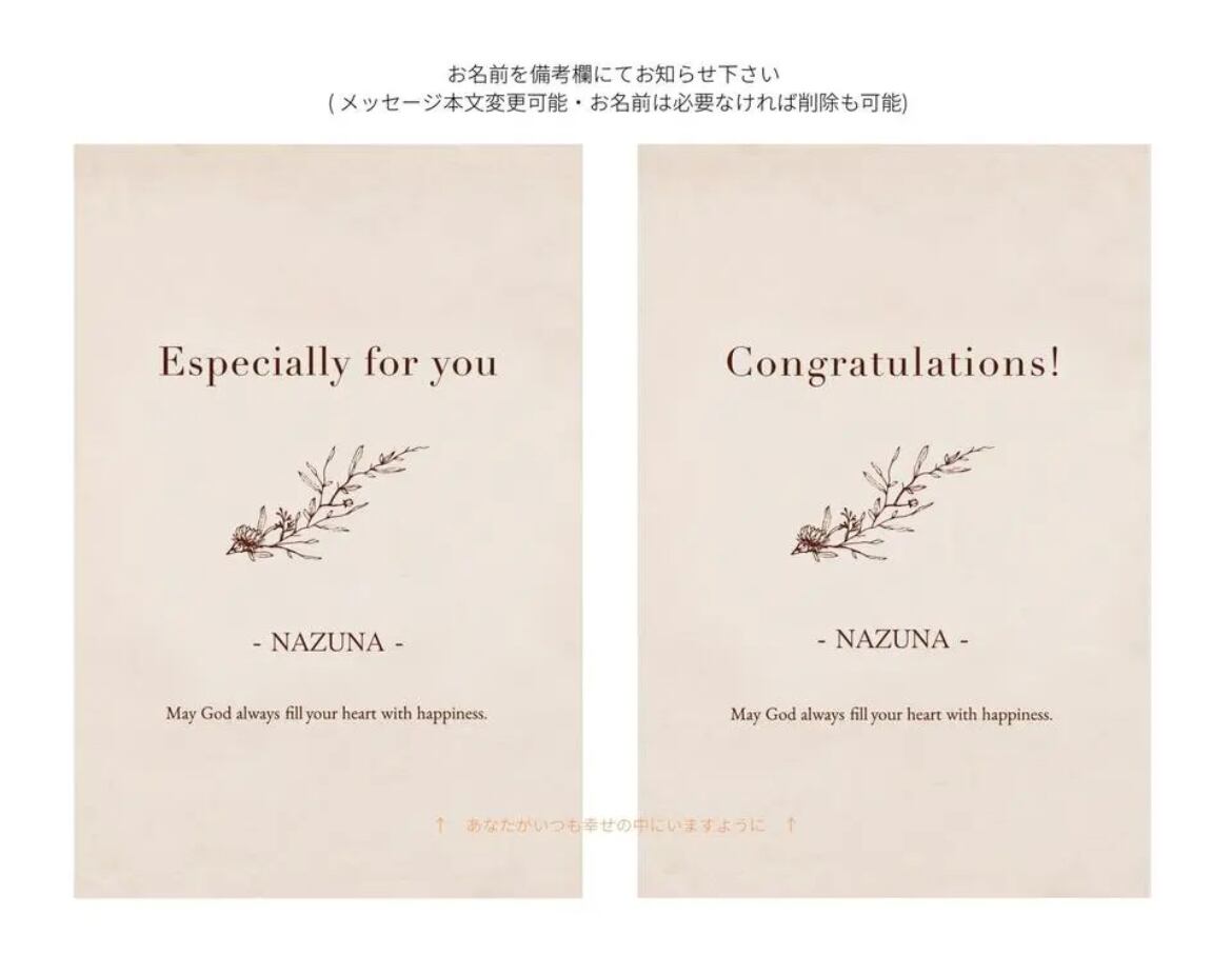 また、ご希望のオリジナルメッセージを英文or日本語でお入れできます。備考欄にてお知らせください。