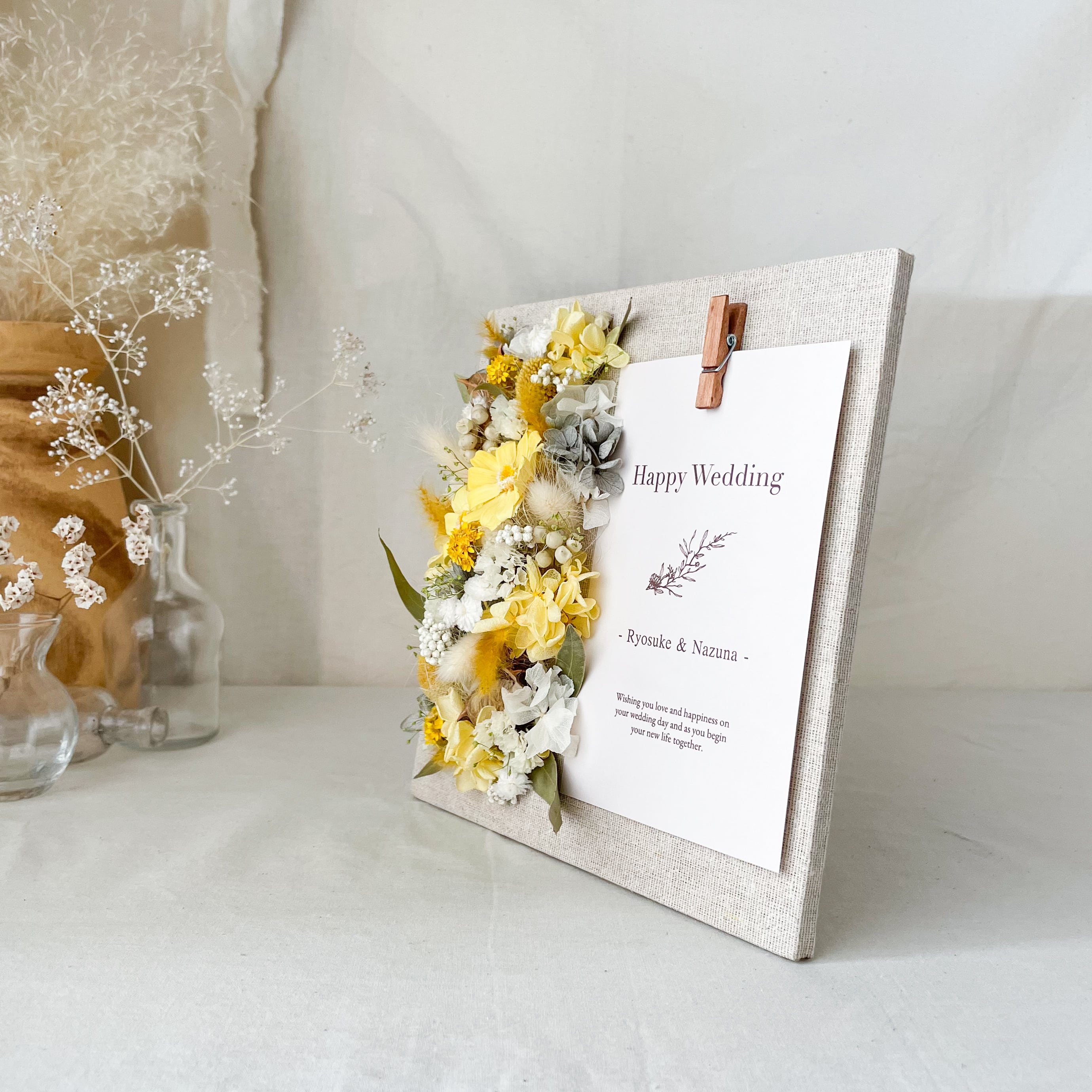 【お名前入れ・カード差し替え可能】キャンバス地フォトフレーム(ジニア・イエロー)