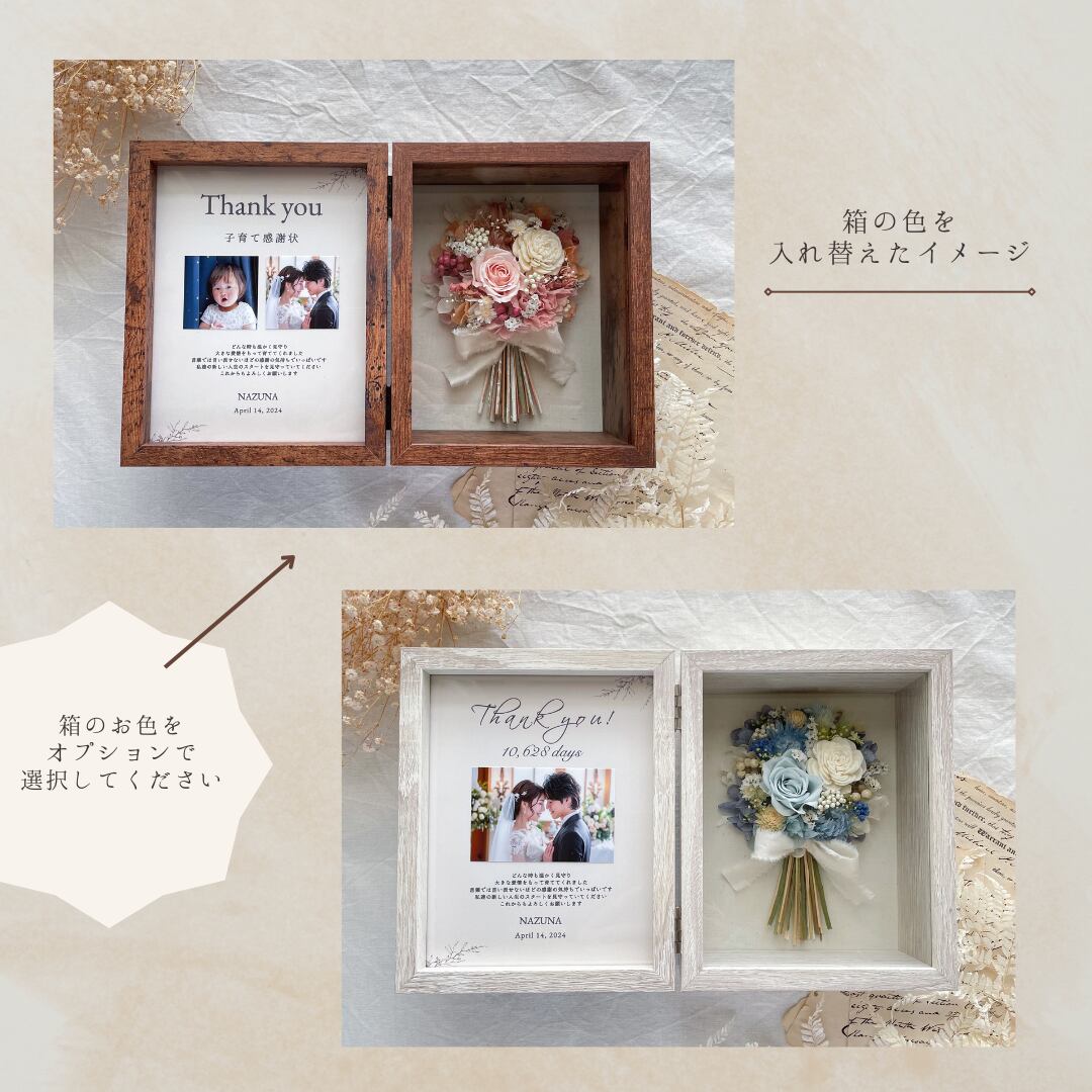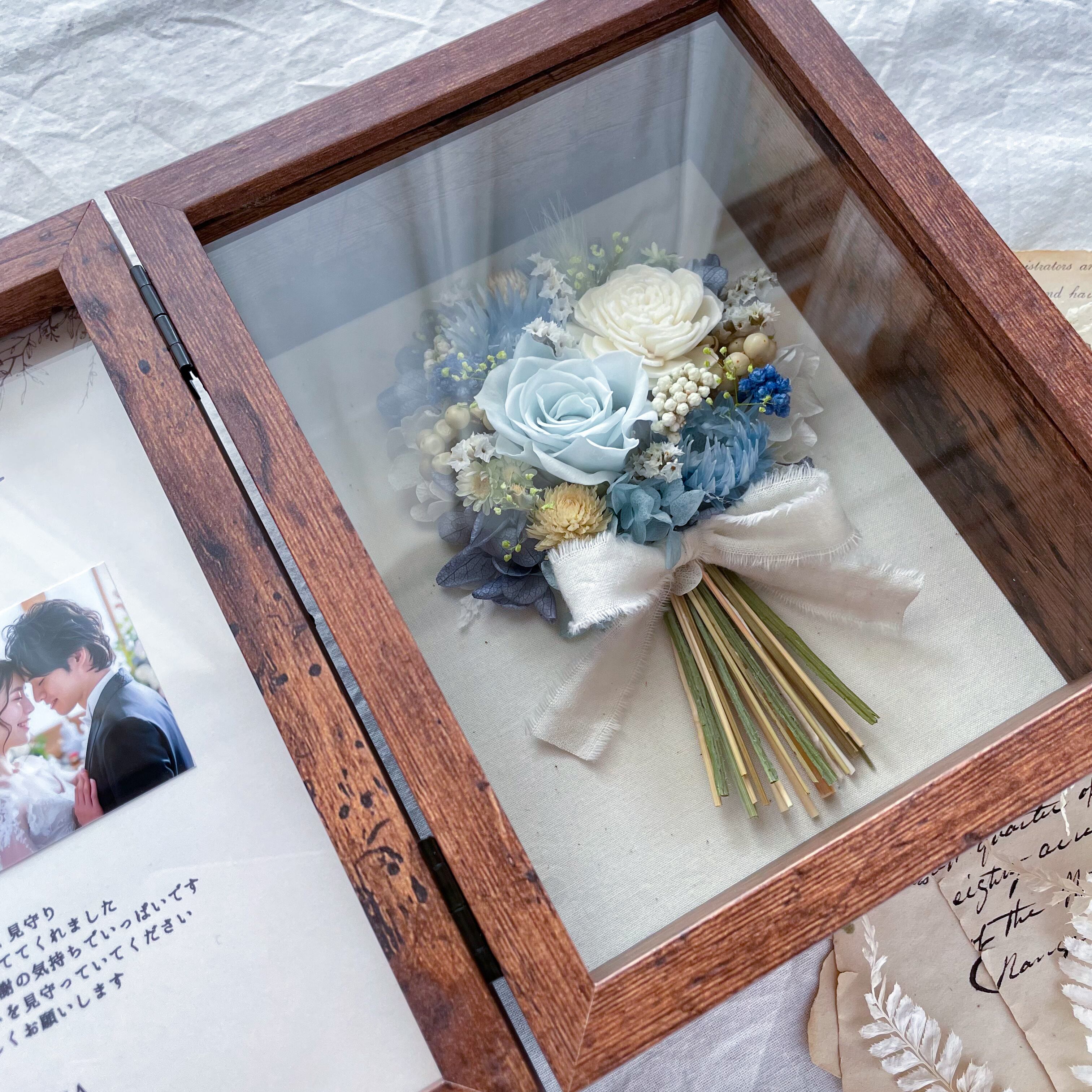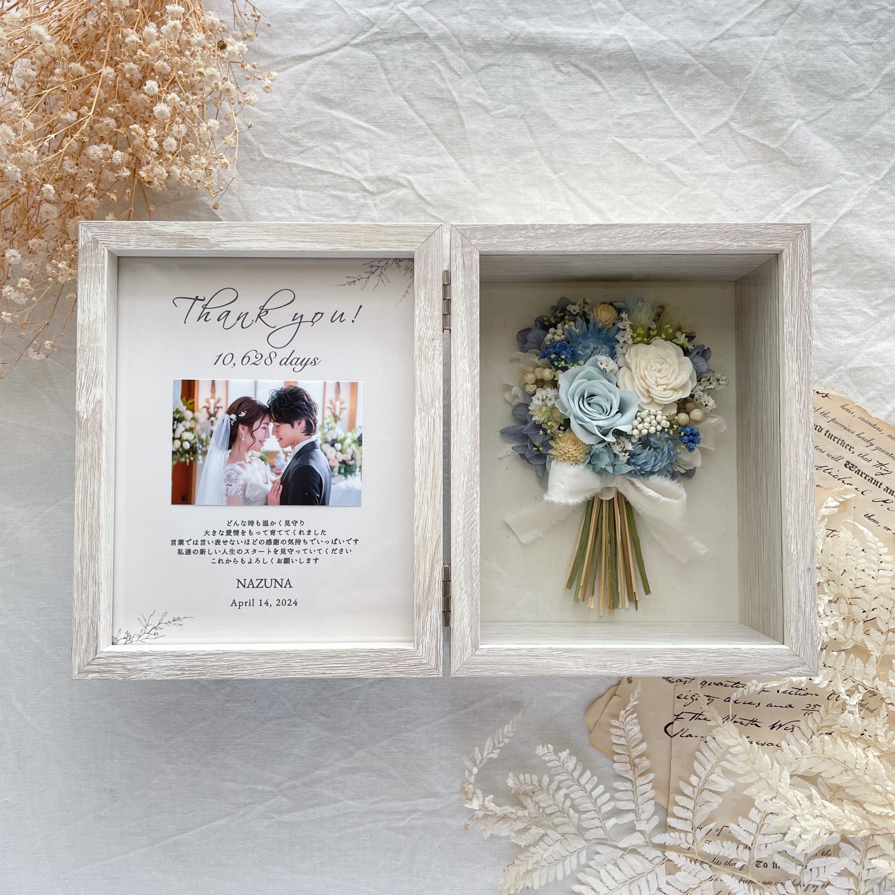 【両親贈呈品・BOXが選べる】ミニブーケのフォトボックス(ブルーバラ入り)